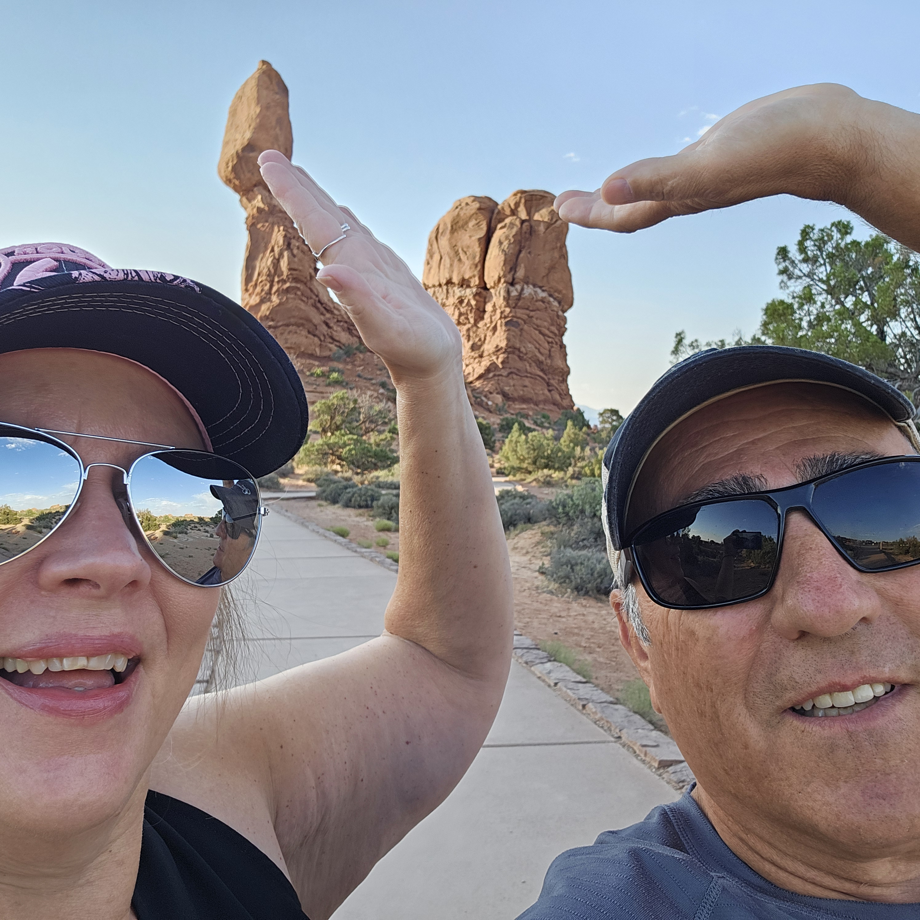 We had a 7:00 am reservation to enter Arches. We left early and got there before 7:00 because it’s another day of over 100 degrees (turned out to be 109 degrees). We followed The Shaka Guide Driving Tour for Arches.