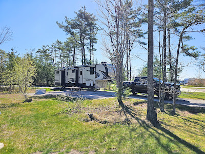 25.05.14 We left home and arrived at Apple Creek Campground. Adequate. Electric and water only. Site 416. We were to be in site 415 but the tree branches hung too low for our camper. $55 per night.